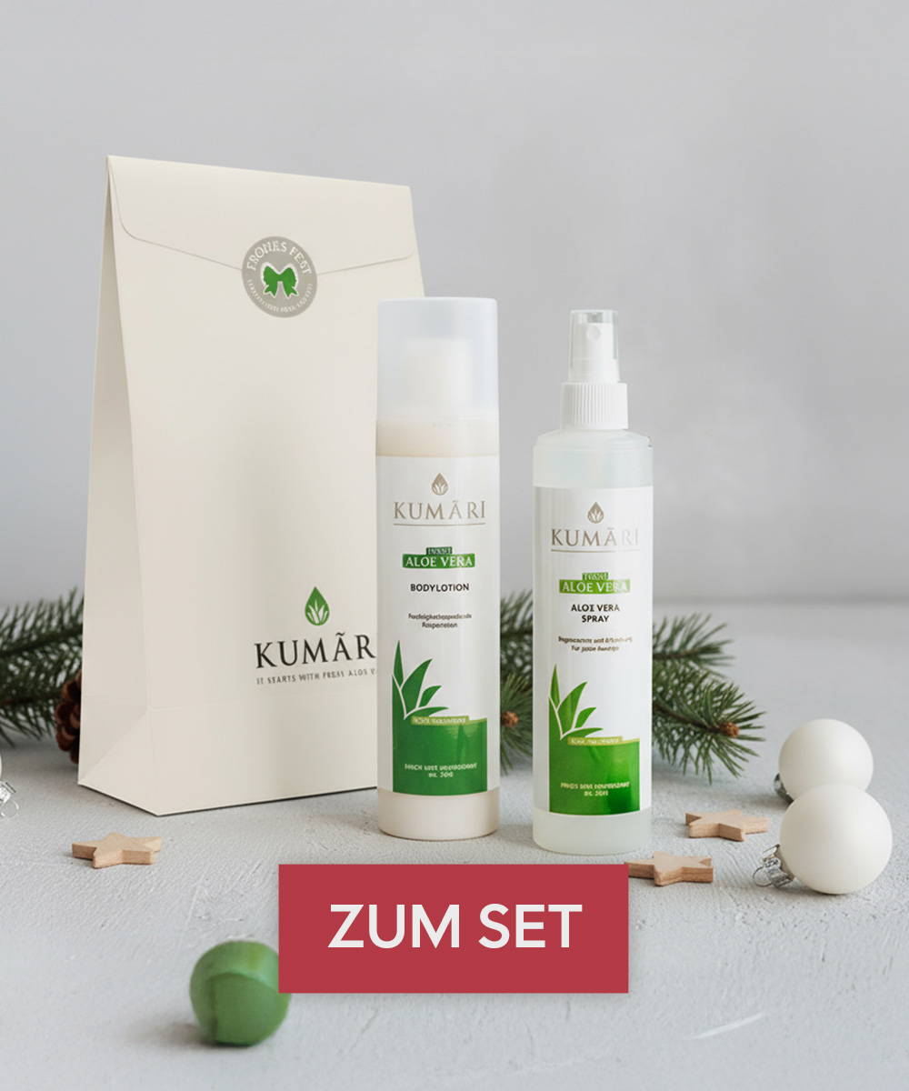 Auch im Winter ein wunderschönes Geschenk: Das Aloe Vera Spray beruhigt die Haut sofort, die Bodylotion pflegt intensiv – ideal für alle, die sich nach Wärme, Urlaub und Erholung sehnen.
