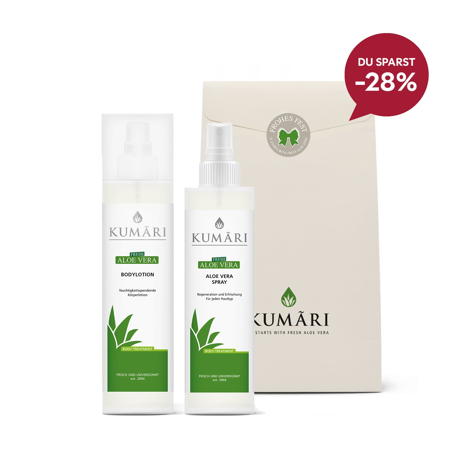 Das Aloe Vera After Sun Set kombiniert zwei Produkte, die deine Haut nach dem Sonnenbaden beruhigen, kühlen und mit intensiver Feuchtigkeit versorgen. Beide Produkte enthalten einen hohen Anteil an frischem Bio-Aloe Vera Pflanzensaft – für sichtbare Pflegewirkung ganz ohne unnötige Zusätze. Ideal für jeden Hauttyp.