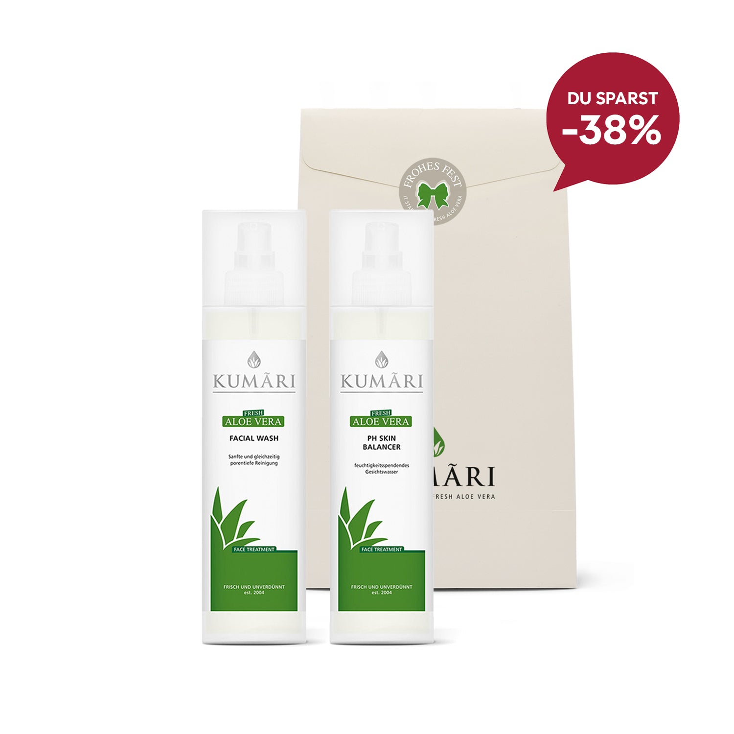 Das KUMARI Facial Wash besteht aus 77% frischem Bio-Aloe Vera Pflanzensaft und Inhaltsstoffen natürlichen Ursprungs. Die reinigende und zugleich feuchtigkeitsspendende Formel entfernt sanft und doch gründlich abgestorbene Hautzellen, Staub sowie das Make-up. Es schäumt nur leicht, denn die waschaktiven Substanzen sind natürlichen Ursprungs. So fühlt sich die Haut nach der Anwendung wunderbar frisch und belebt an.